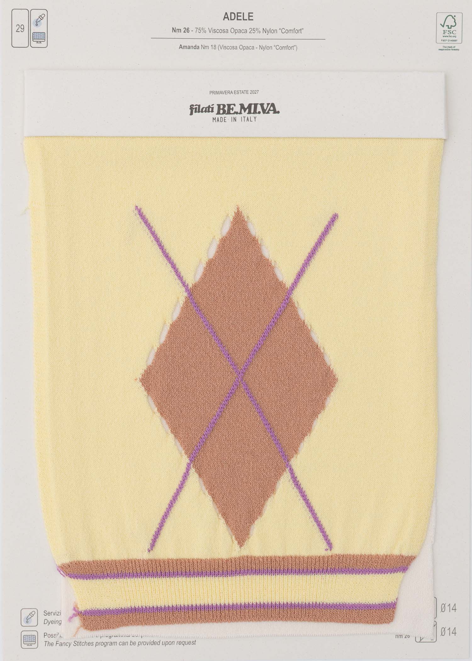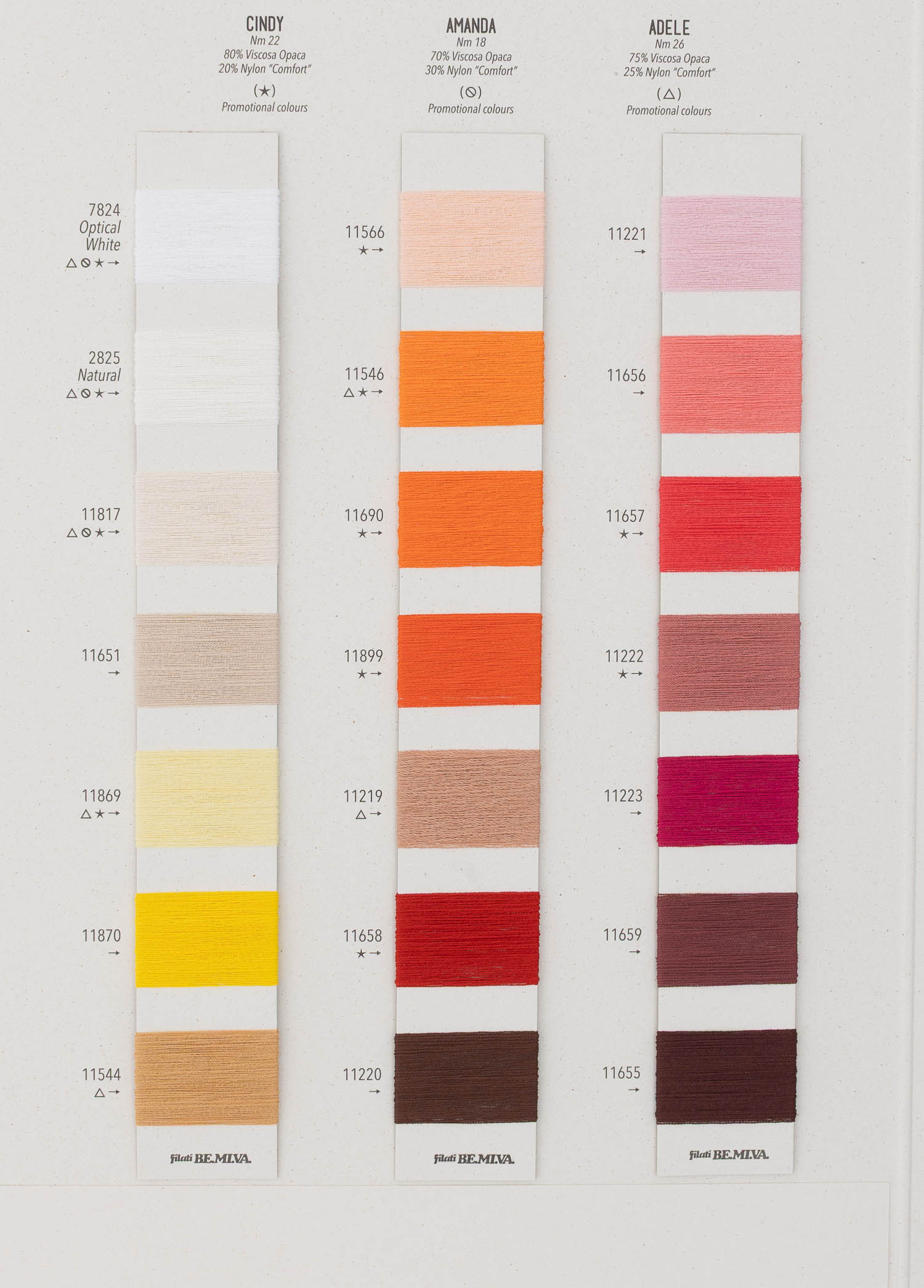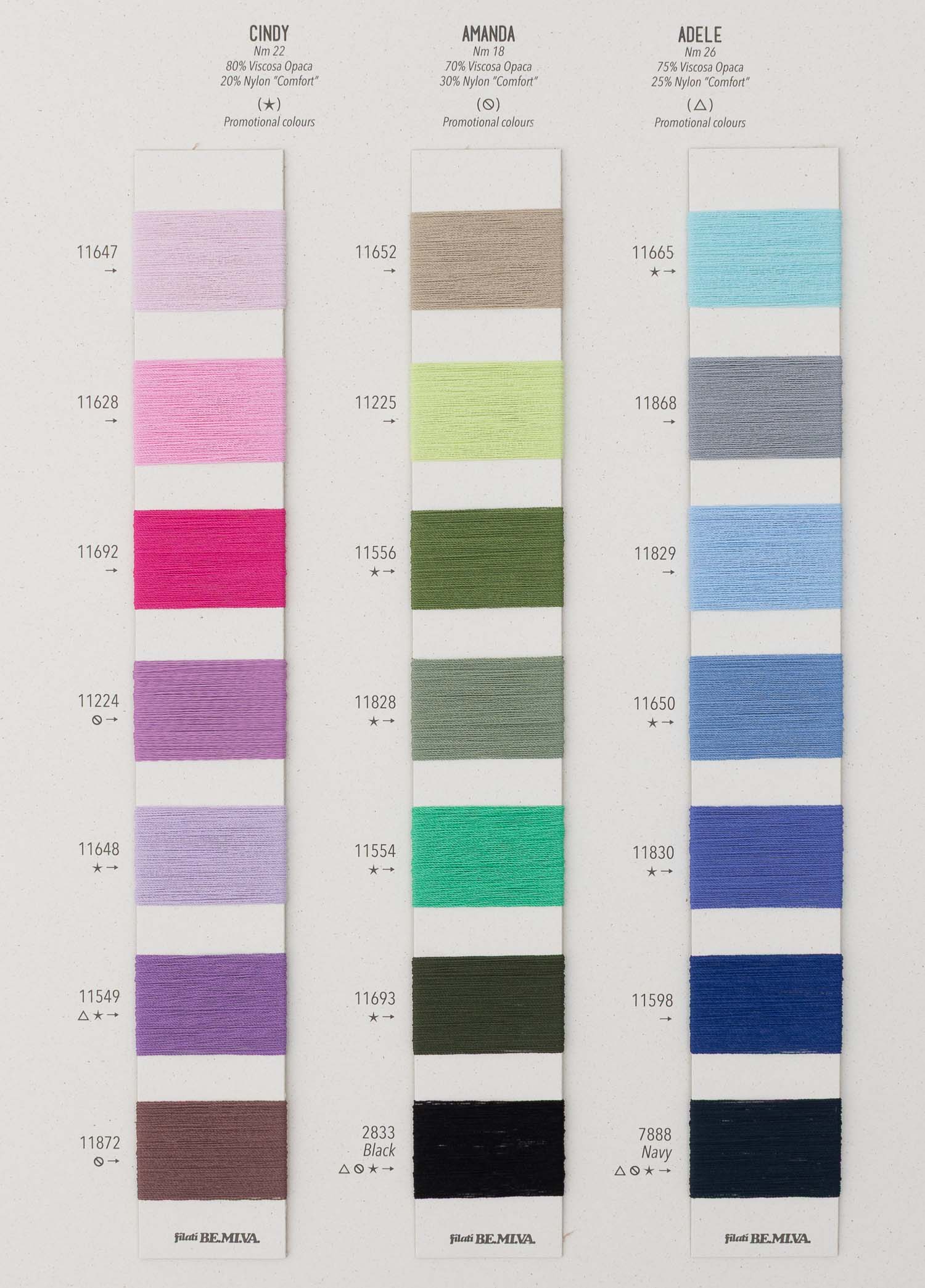 New entry in our viscose family, with a comfortable effect due to the presence of nylon and a crisp and fresh appearance, perfect for hottest summer days. Recommended for 12 and 14 gauge.