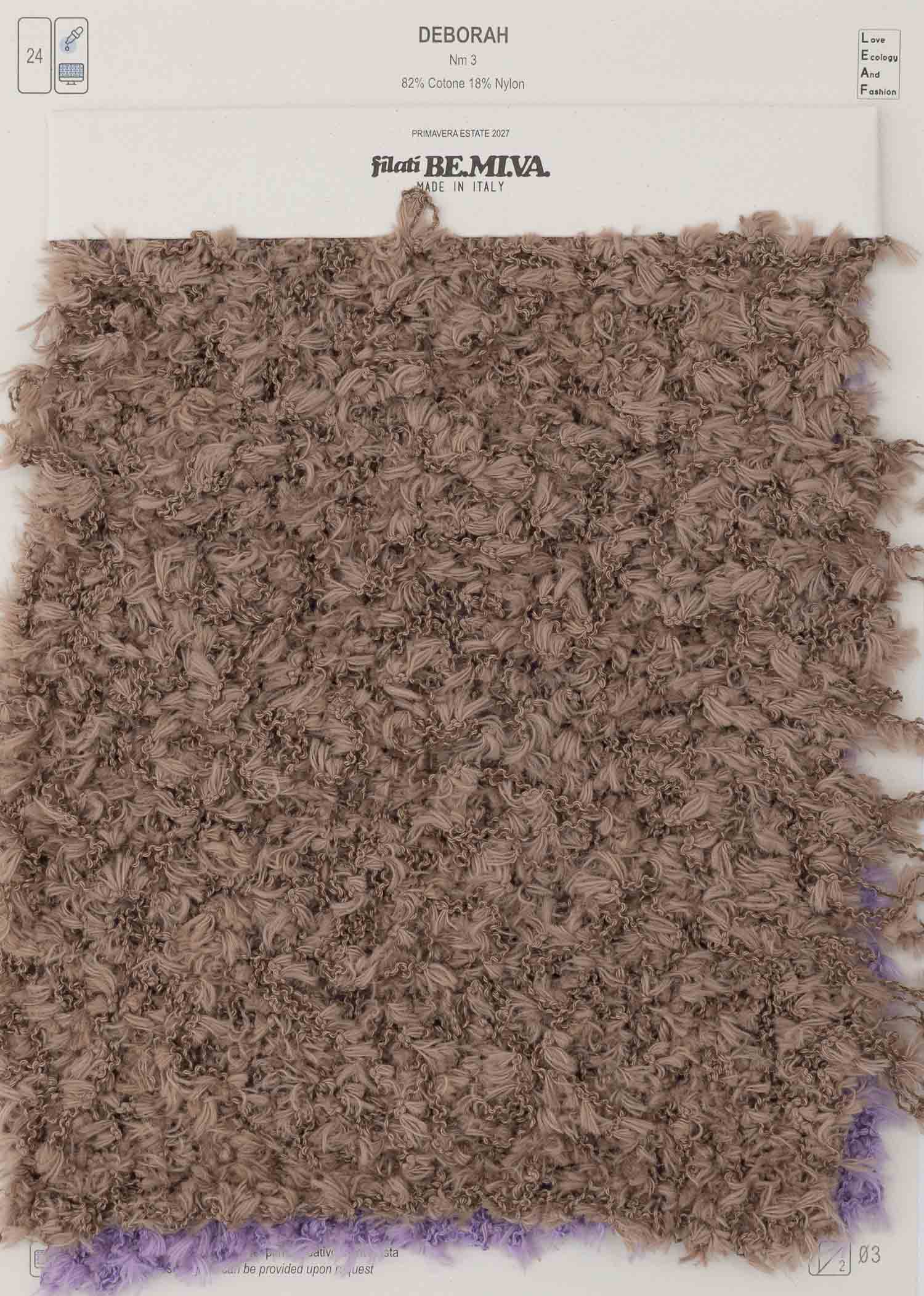 Yarn of exceptional structural creativity and unusual aspect. Designed in part from an interpretation of soft summer fringe with a pleasant hand and in part from a lightweight, floating soul. Knits are always light even when interpreted with the narrowest gauges where the character of the modern, elegant yarn with a slightly rustic and interseasonal flavor is exalted. Exclusively in solid shades with the possibility of customers’ own colors on request.