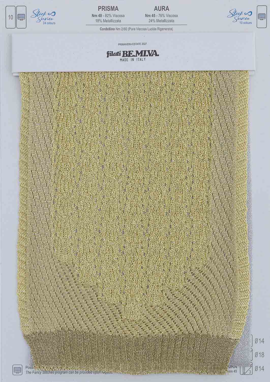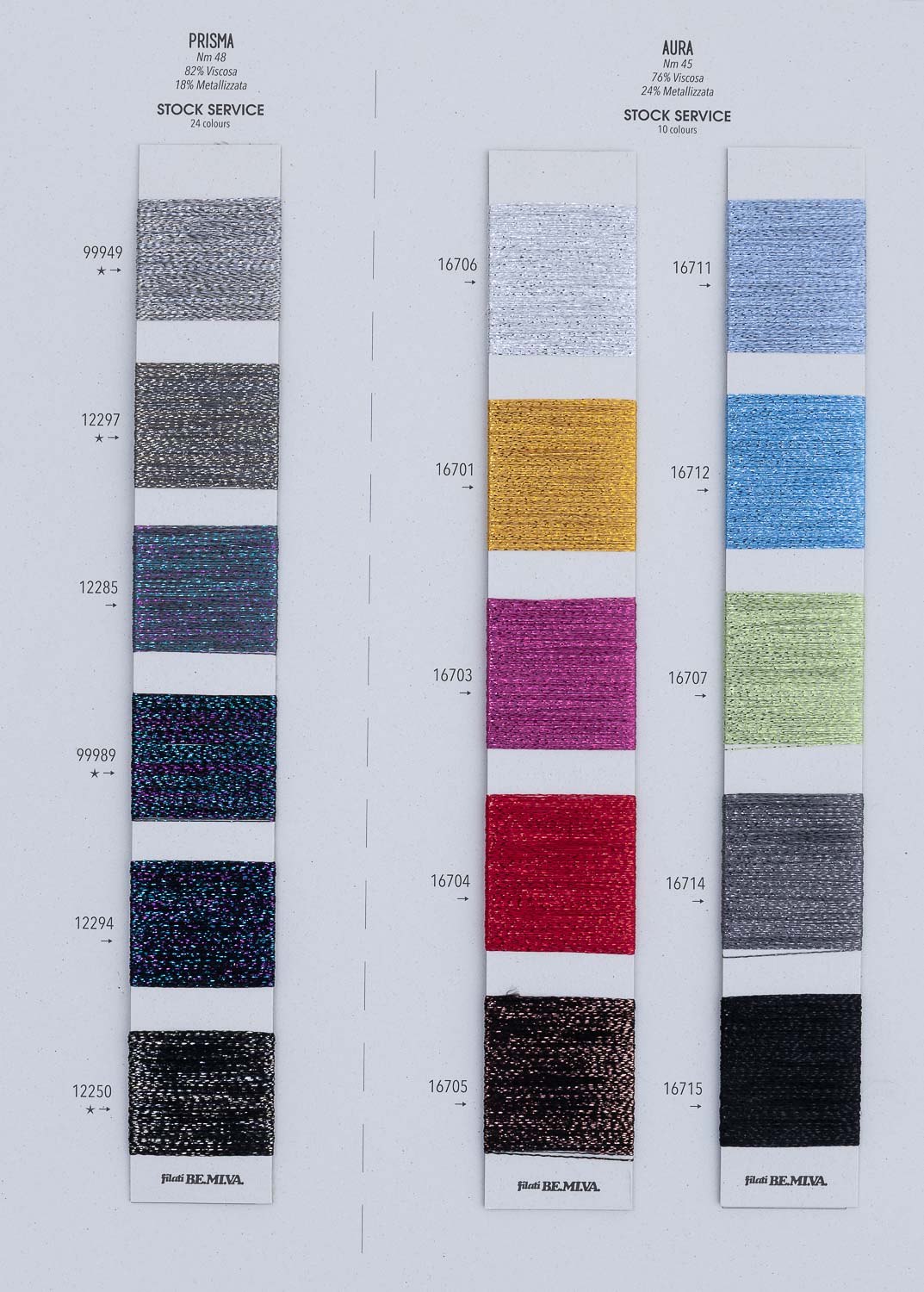 Viene presentato a completamento della cartella Prisma che al contrario presenta lamè e viscosa multicolore.