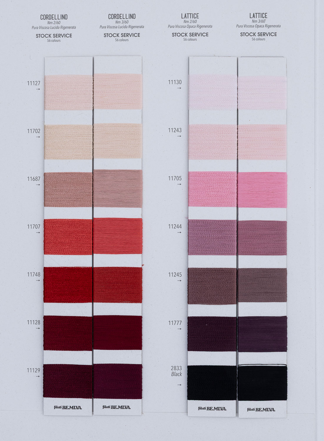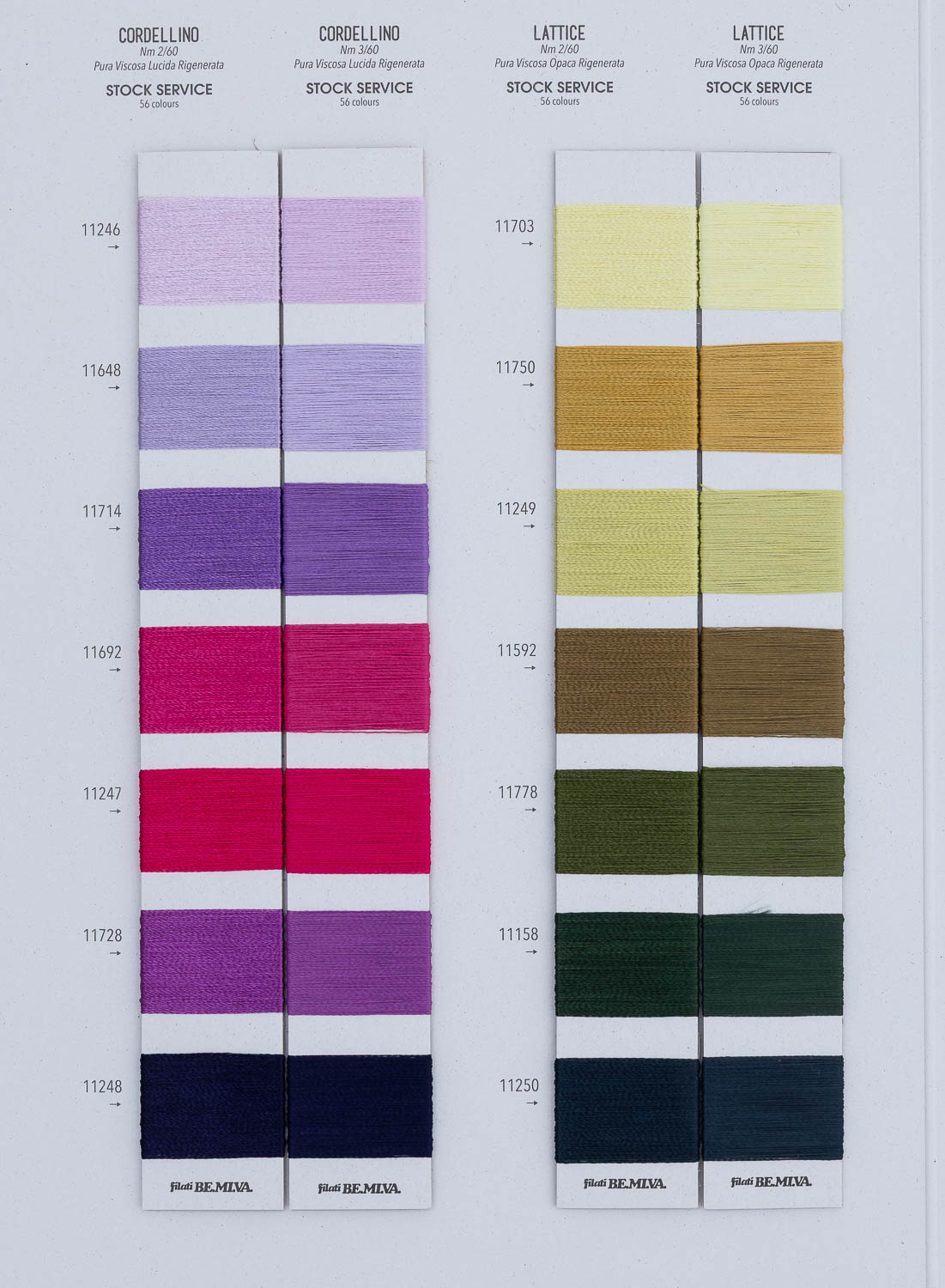 Tradizionali filati di Bemiva in viscosa bava continua effetto seta per capi fluidi, setosi ed eleganti per le finezze più sottili 12-14-16-18, dalla struttura tonda e sostenuta, ottima base ancora più apprezzata grazie alla nuova coloritura tutta in Stock Service e da una ampia cartella colori. Adatti anche come intervento assieme ad altri fili della collezione per conferire un aspetto lucido e femminile ai capi.