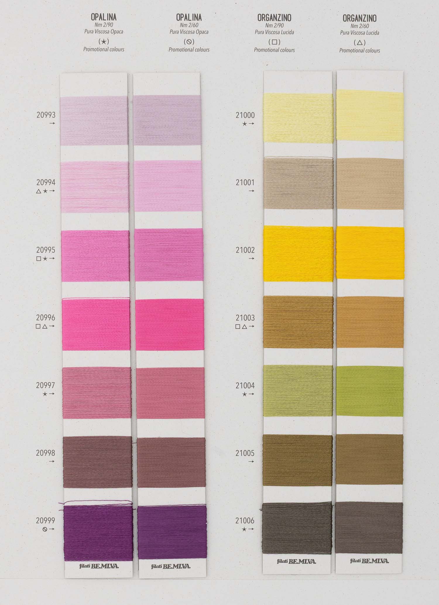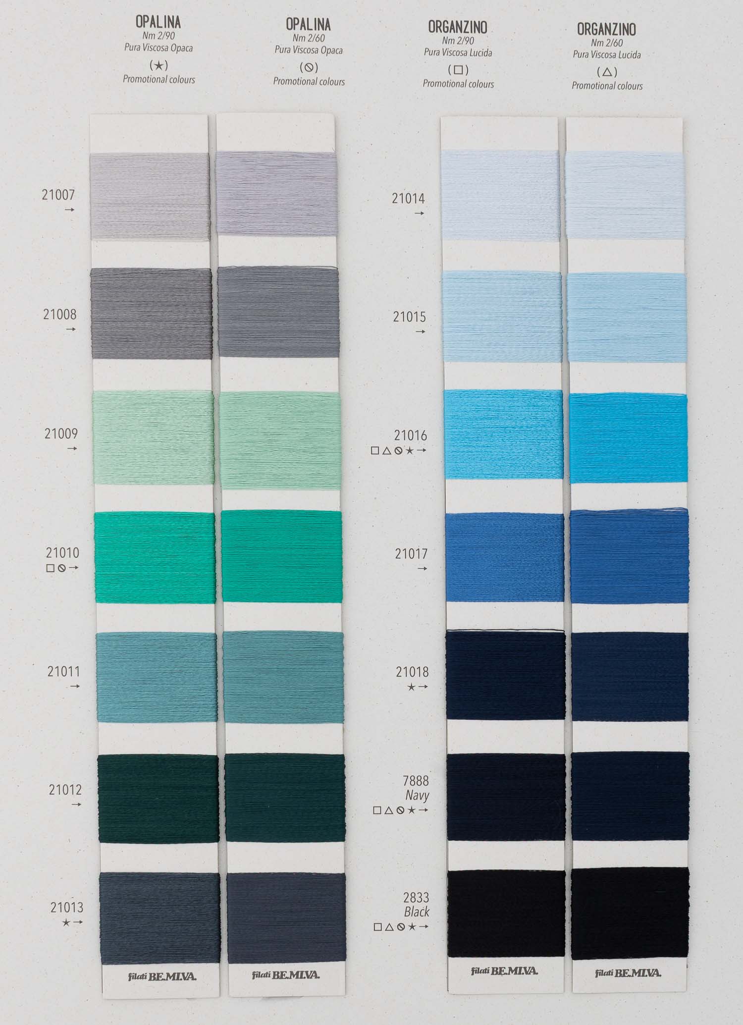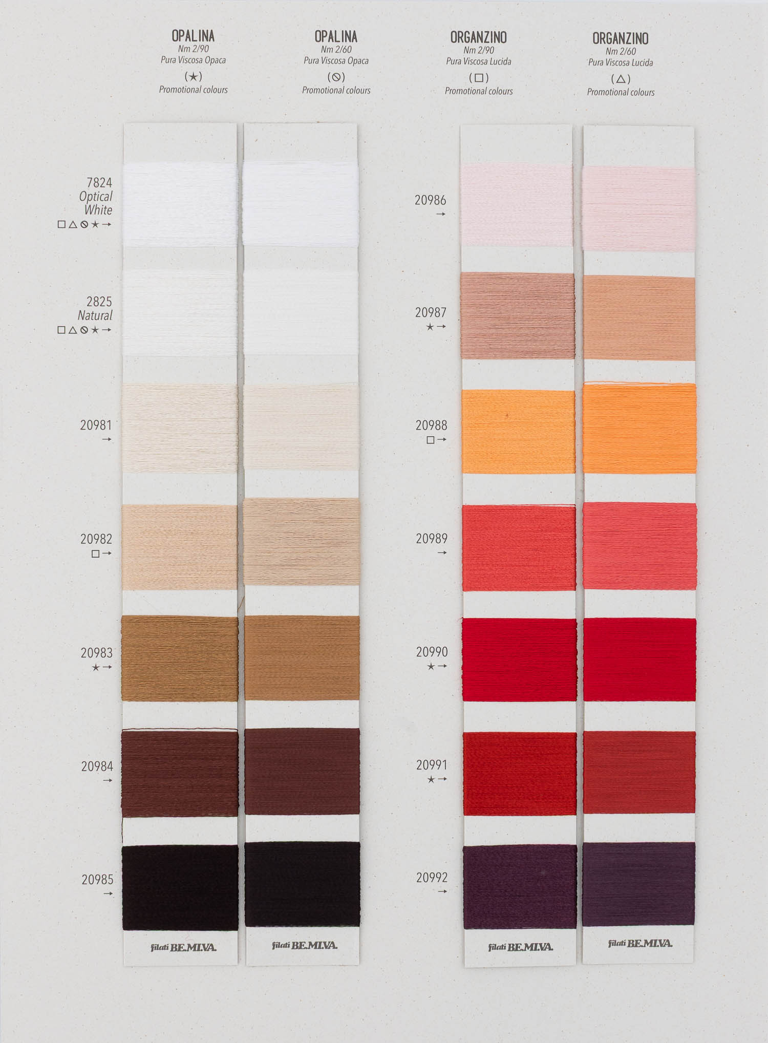 Fili in viscosa effetto seta per capi fluidi, setosi ed elegantissimi per le fin 16 - 18 in viscosa opaca e lucida. Fili utilizzati in alternativa alla costosa pura seta, sono più regolari e con solidità dei colori al lavaggio migliore.