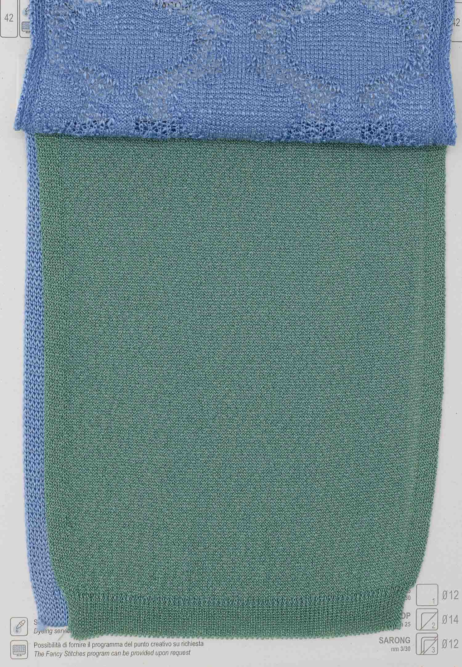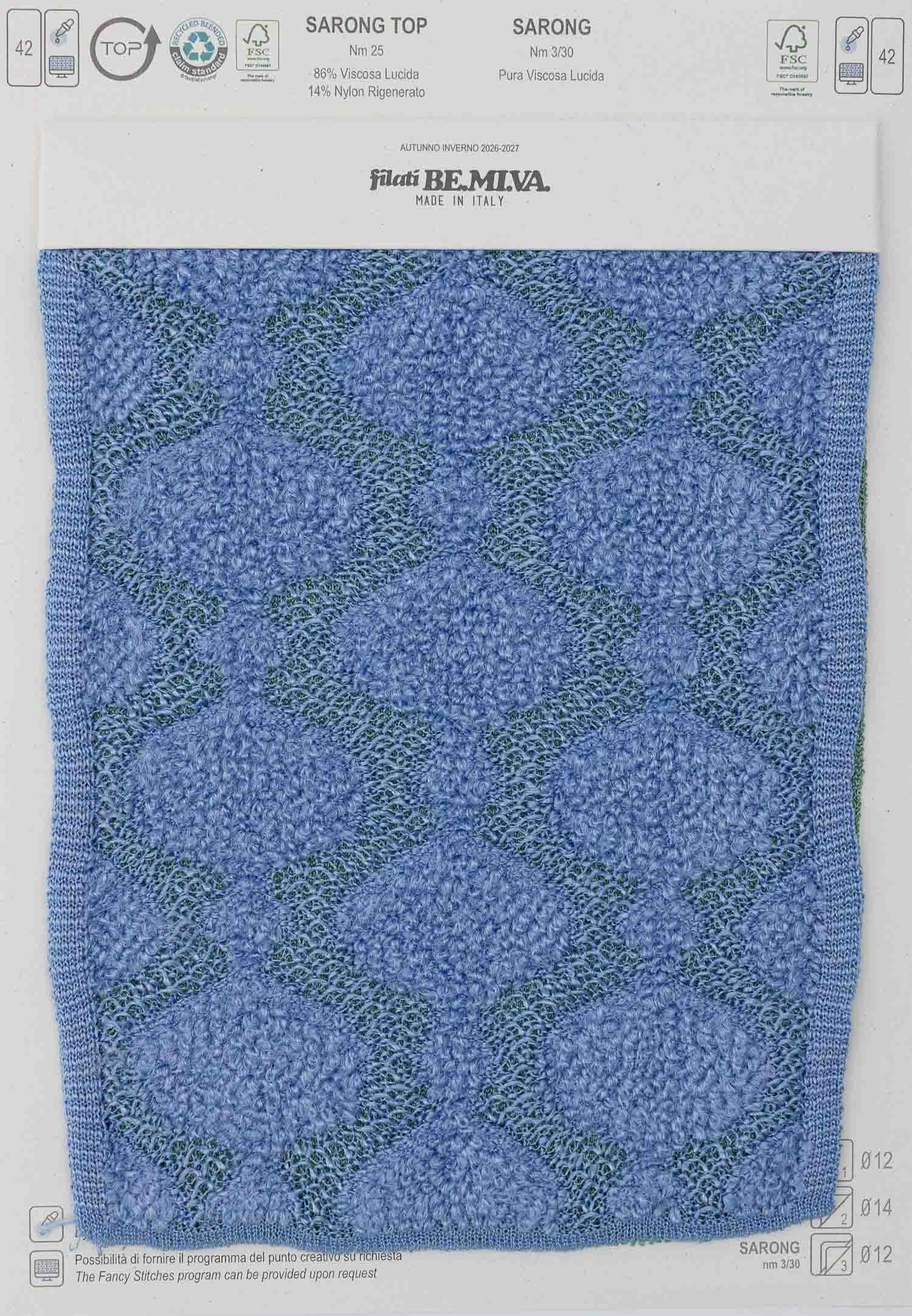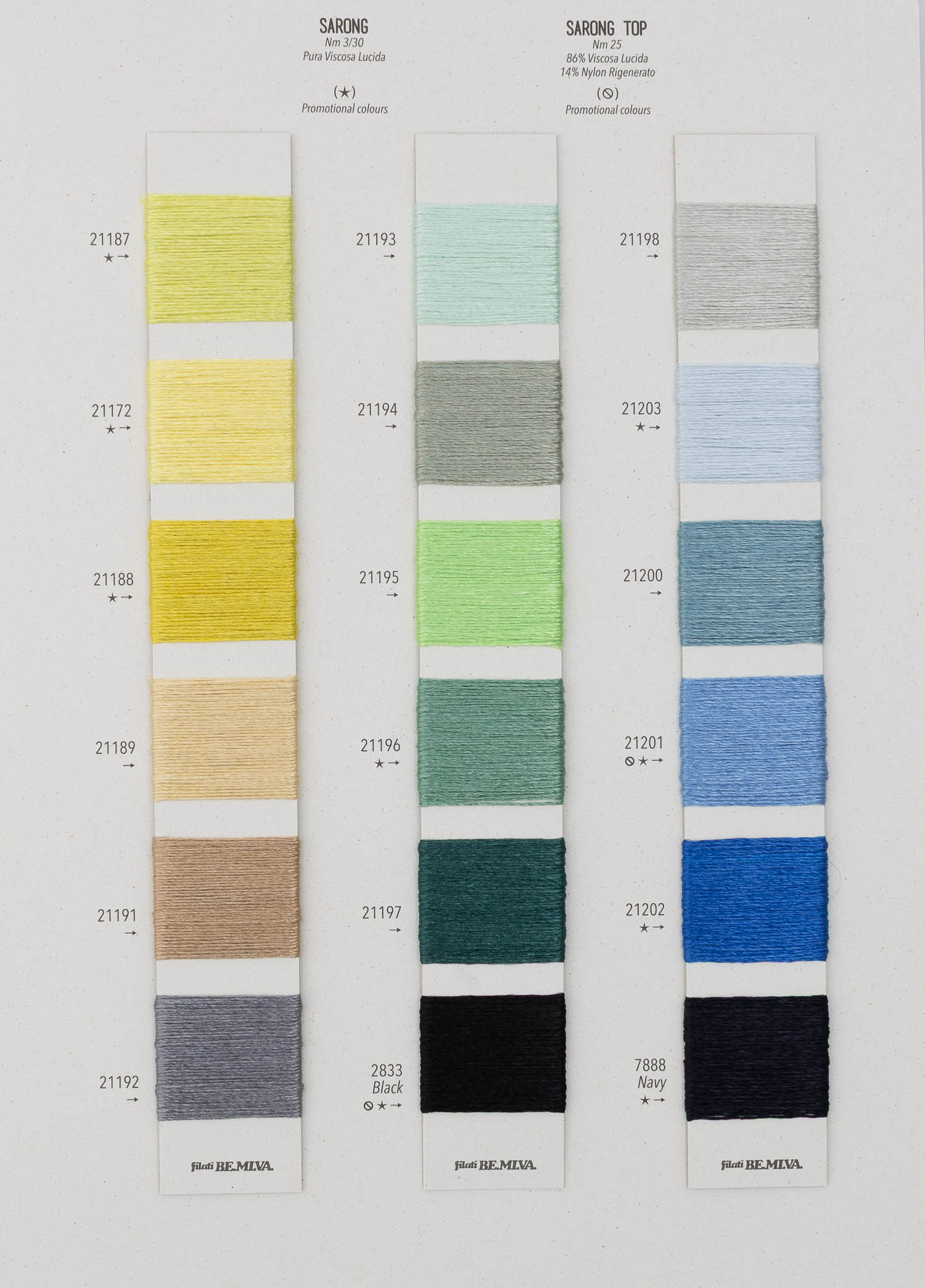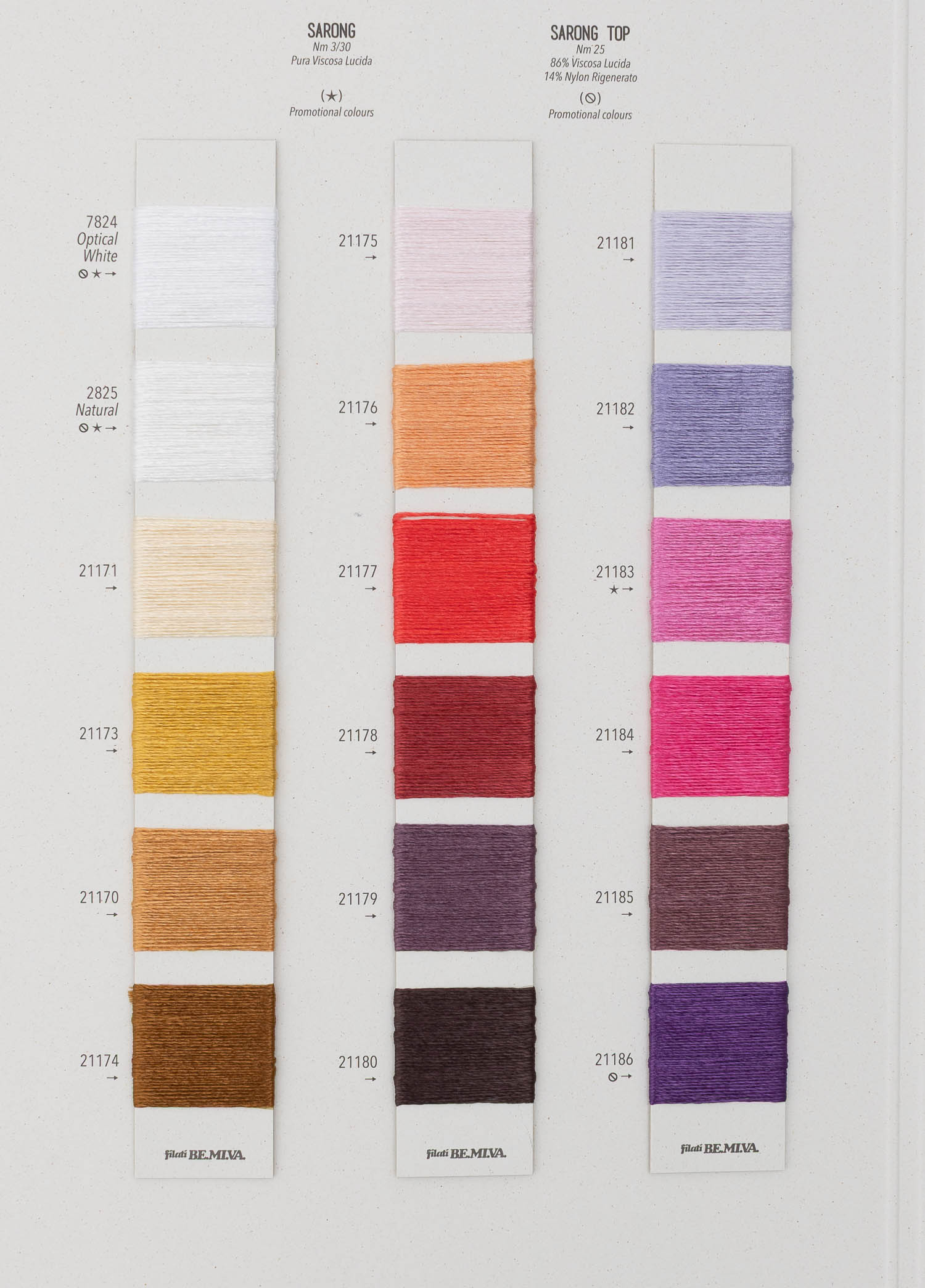Sarong è un filato lineare ma che racchiude caratteristiche molto interessanti. Pur essendo costruito in viscosa continua, genera ugualmente capi dalla mano