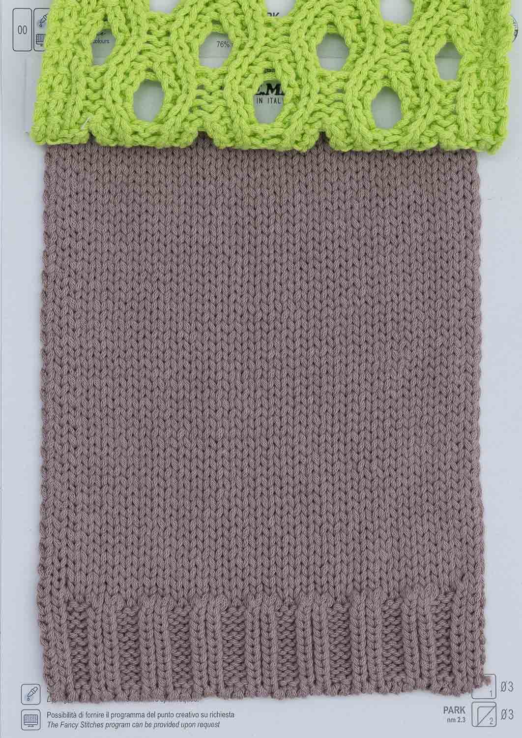 La famiglia dei nostri imbottiti invernali. Filati rotondi ormai best sellers dove la struttura imbottita dei “Park” esalta al massimo la leggerezza per maglie sempre attuali. Disponibili in tinta unita o melange. Alleggerita ulteriormente dal nuovo speciale titolo per finezza 7 (EXTRAFINE) per coprire tutte le macchine industriali. La straordinaria versione nel titolo 0,2 dal tubolare esagerato si esalta se lavorata a mano o per accessori.